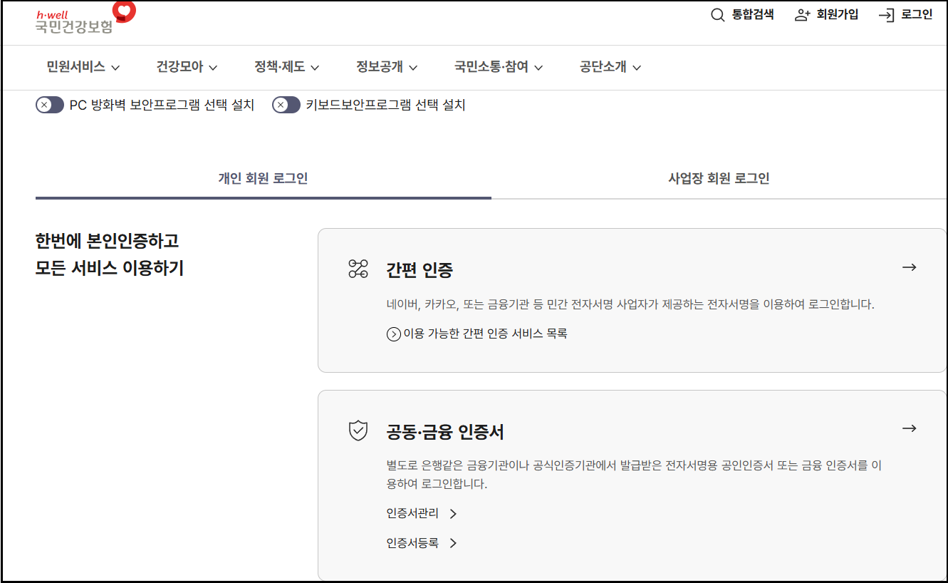 - https://www.nhis.or.kr 접속