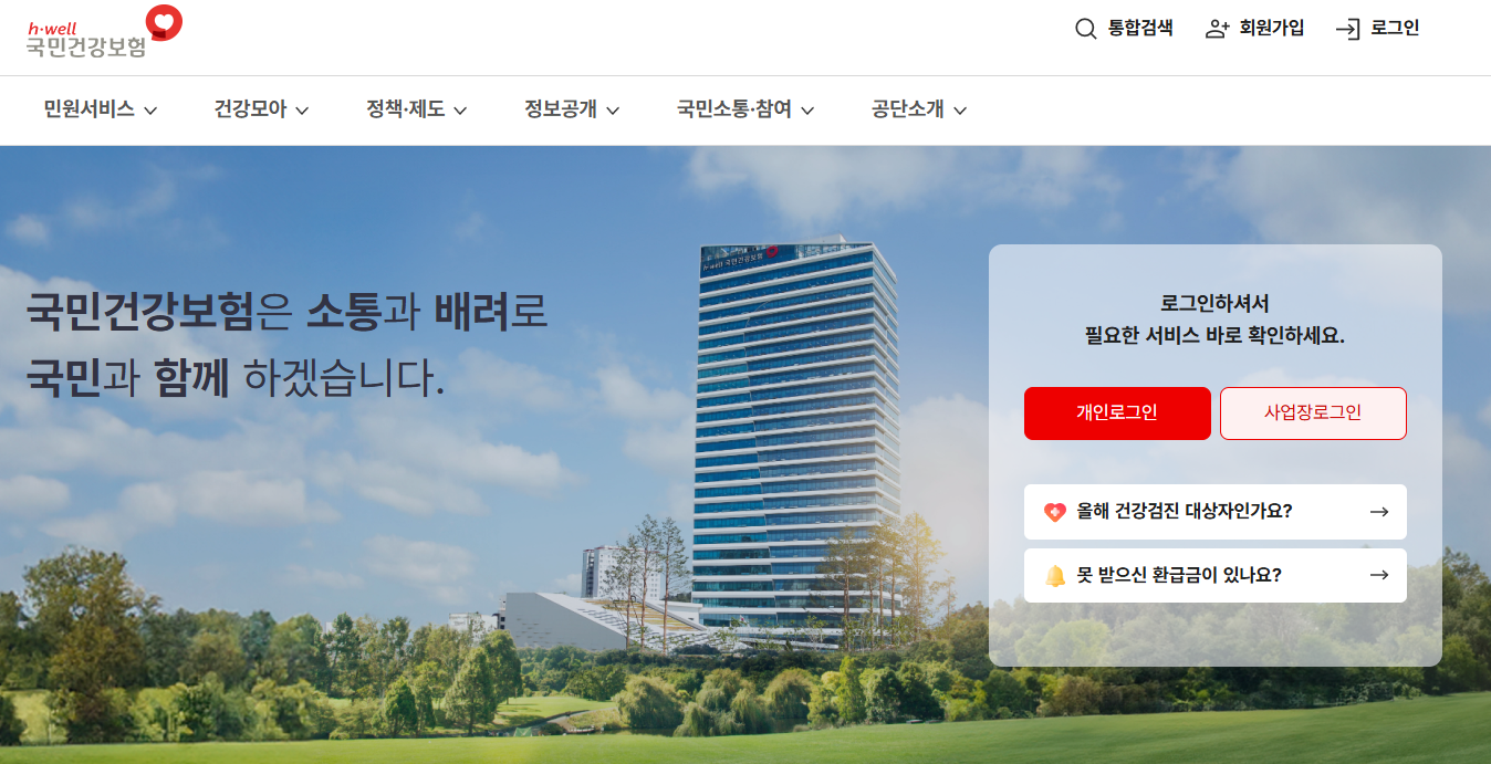 ① 국민건강보험공단 홈페이지
