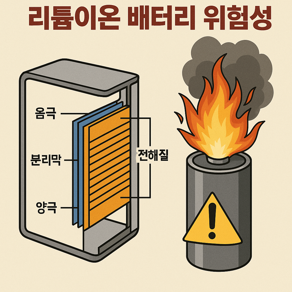 리튬배터리는 잘못 다루면 열 폭주가 일어나 불이 붙을 수 있어요.