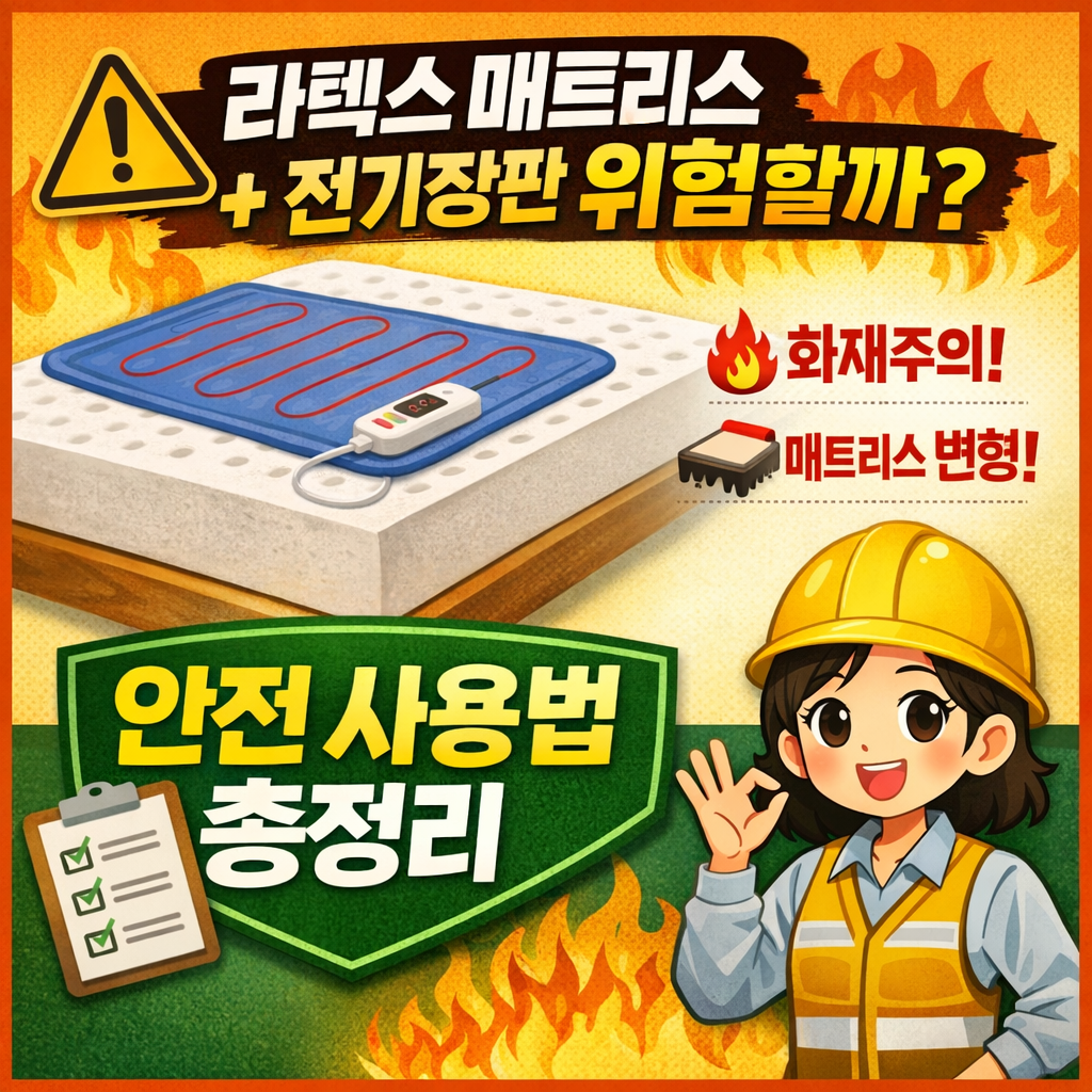 | 위험성 | 라텍스는 열 축적이 심해 전기장판과 함께 사용 시 과열, 화재 가능성 ↑ |