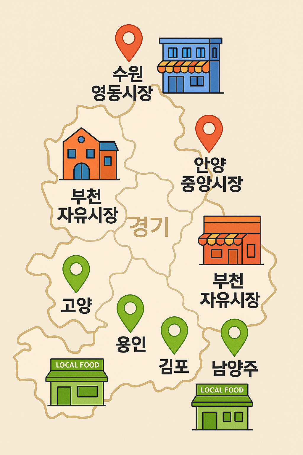 - 로컬푸드 직매장: 고양·용인·김포·남양주 등 도농복합지역 중심