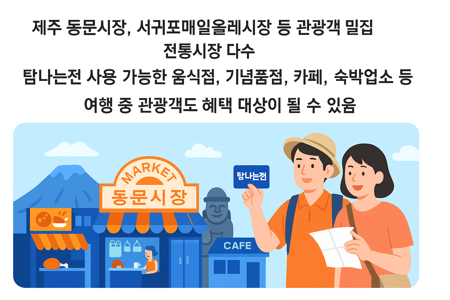- 제주 동문시장, 서귀포매일올레시장 등 관광객 밀집 전통시장 다수