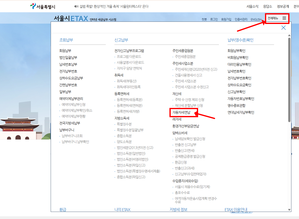 - 서울시 ETAX: etax.seoul.go.kr (서울 거주자 전용)