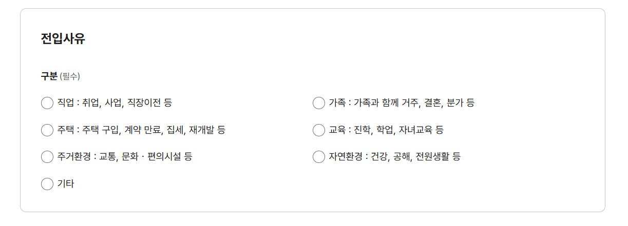 → ‘이사’ 또는 ‘동거’ 등 이유 선택