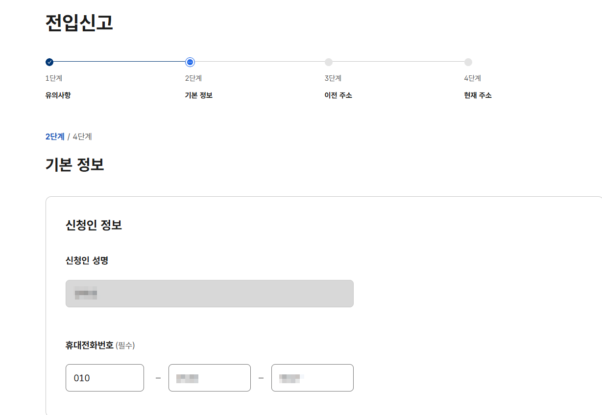 2단계: 전입신고 메뉴 선택