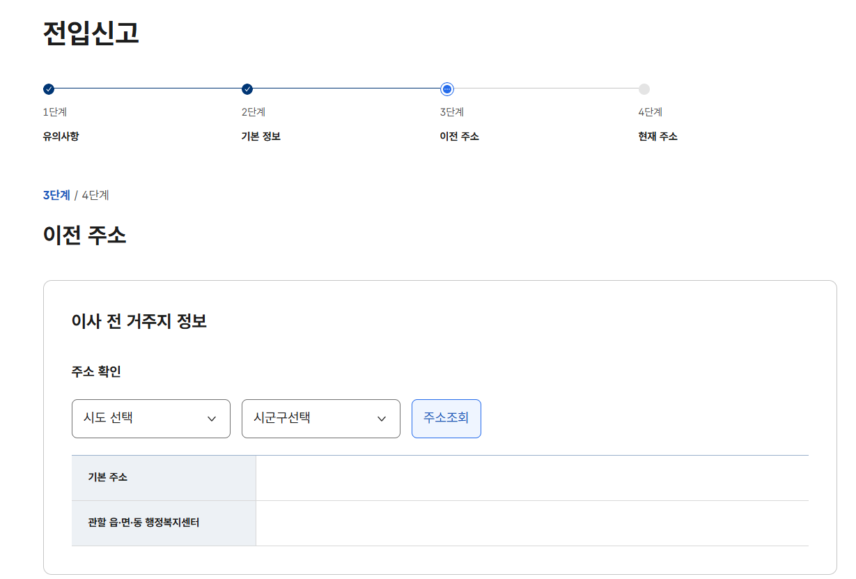 6단계: 전입 사유 입력 및 신청서 제출