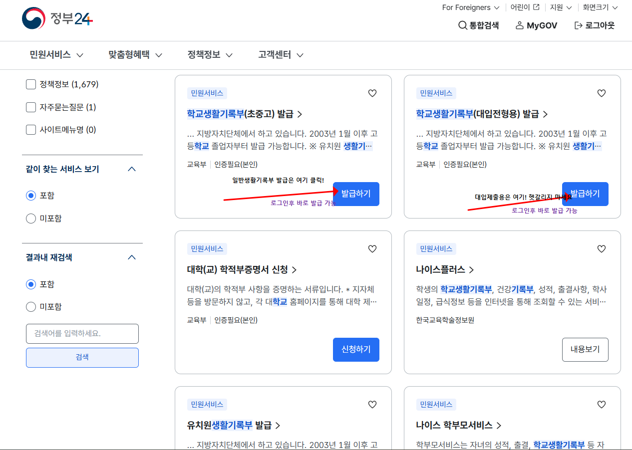 정부 24에서 생활기록부를 발급받으려다 당황한 적 있으신가요?