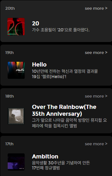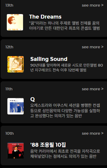 - 1970~2020년까지 각 시대별 차트 1위 곡 보유