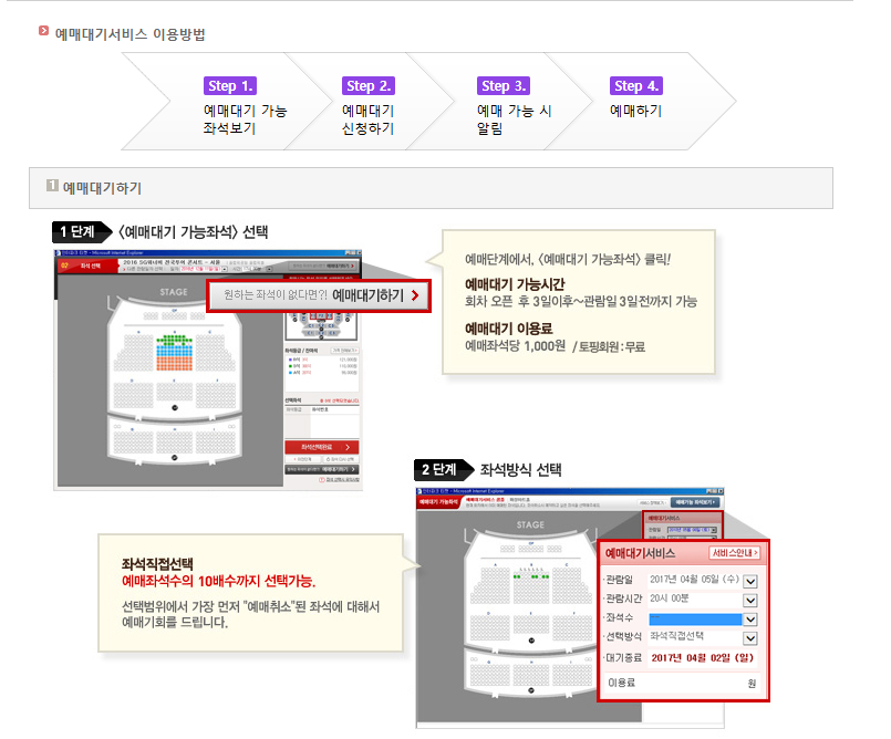 - 여러 등급에 예매대기를 걸어두면 성공 확률이 높아집니다.