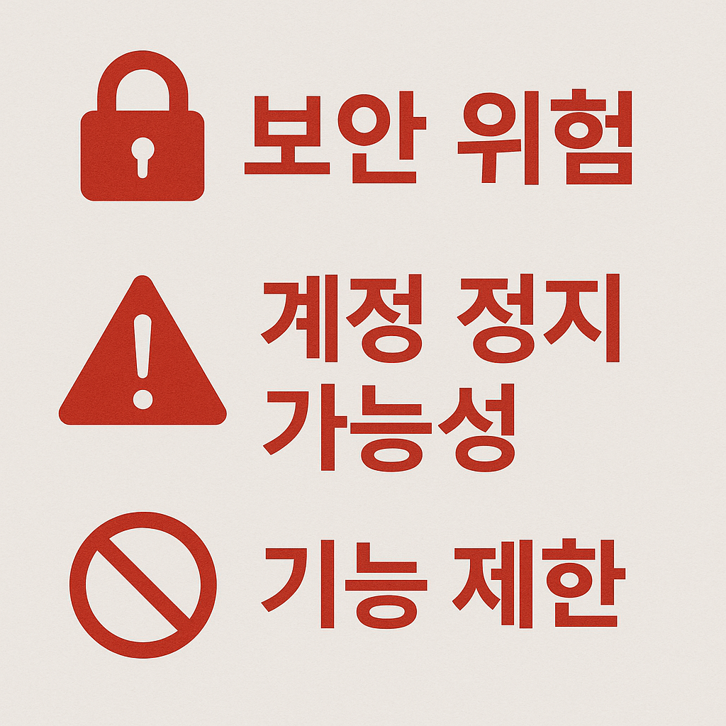 사진 전송, 백업 복원 등이 오류가 날 수 있습니다. - ⚠️ 계정 제한 위험
