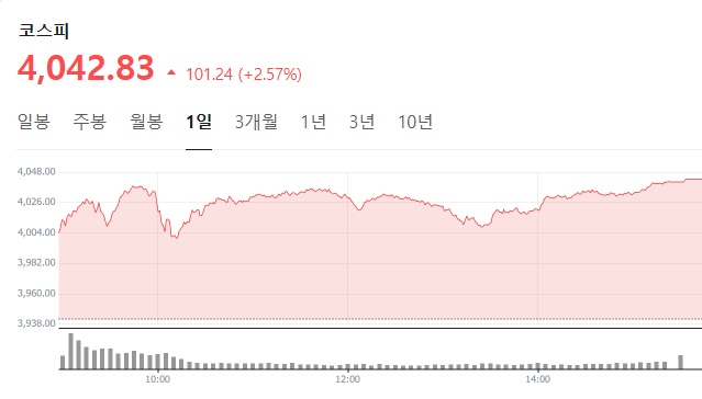 - 2025년 10월 27일, 코스피는 장중 기준으로 4,042.83포인트를 기록하며 사상 첫 4,000선을 돌파했습니다.