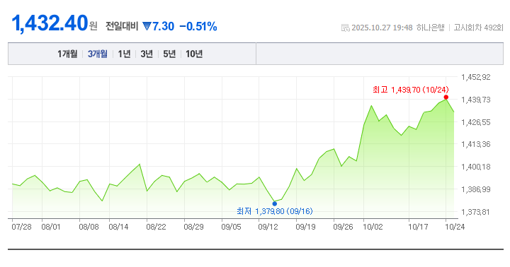 - 최근 원/달러 환율이 1,430원대까지 오르며 원화 약세가 나타났습니다.