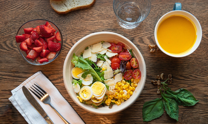 - 재료: 병아리콩, 퀴노아, 파프리카, 오이, 방울토마토, 삶은 달걀