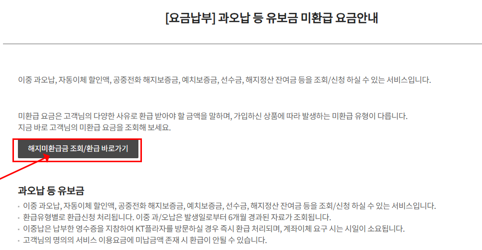 - ‘요금조회 > 과오납 환급’ 메뉴 클릭