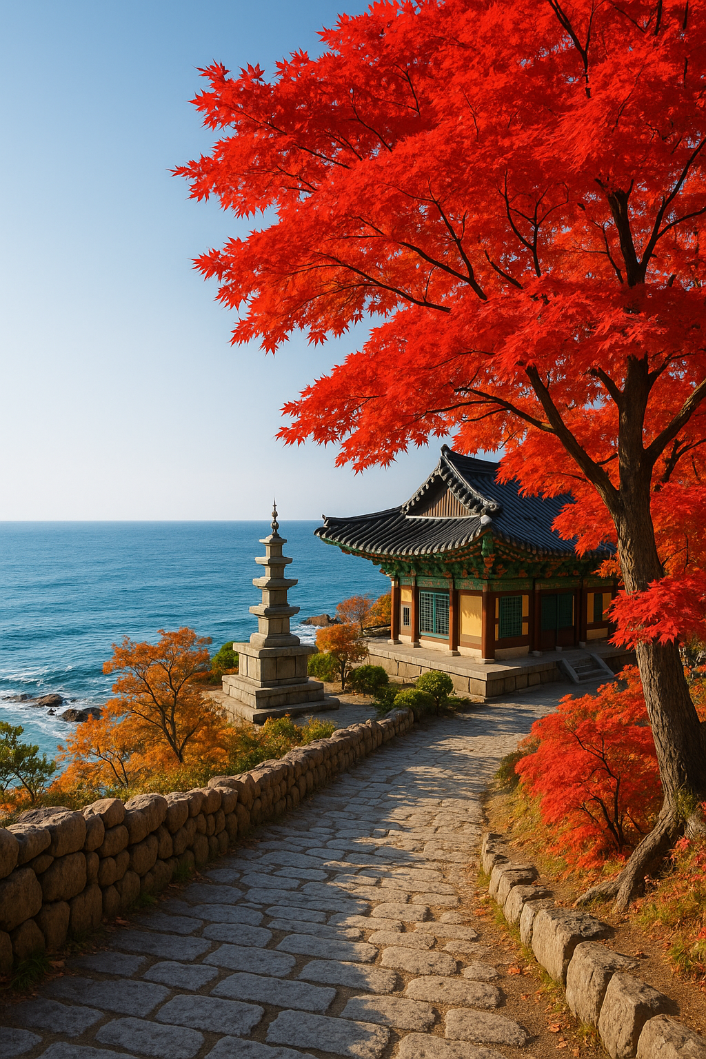 단풍과 바다를 동시에 감상할 수 있는 독특한 포인트. 산책과 사진 찍기 최고.