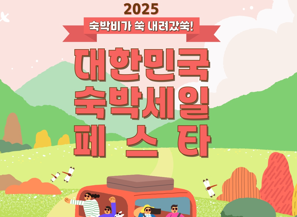 **‘대한민국 숙박세일 페스타’**는 문화체육관광부와 한국관광공사가 주관하는 전국 단위의 숙박 할인 지원 캠페인입니다.